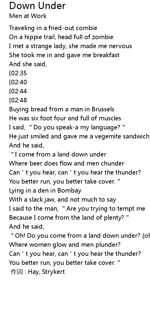 Down Under Lyrics Luude Pinterests ... | 320x180 px